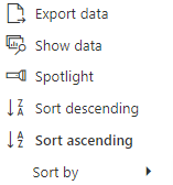 Above the tables and visuals, several buttons allow you to further analyze data. Hover above the table to see them.
